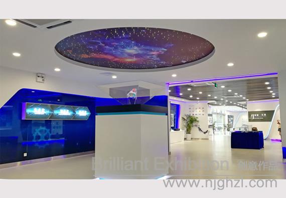 展館旨在打造對外形象宣傳和產品展示的平臺,定位為電機創新產品展示館。以藍灰白為基調,體現展館的工業質感。展面采用大塊面化的設計。以富有科技感的元素穿插始終,將各展示板塊統一為有機的整體。全息成像技術恰到好處地表現機電產品運轉原理,展陳空間產品主題突出,主次分明。