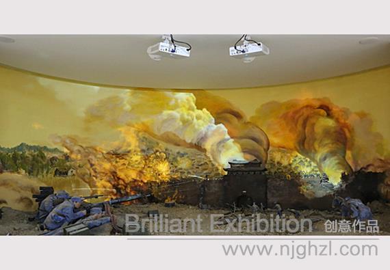 揚州國(guo)防(fang)教育館(guan)是一(yi)個對外開放(fang)的集知識性(xing)、科普性(xing)、互動性(xing)的展覽館(guan),所以在參觀動線上強調便捷性(xing)和流(liu)暢性(xing)。在800㎡的空間(jian)里,需考慮眾(zhong)多(duo)平面展陳內容(rong)的有機(ji)安(an)排,盡可能地擴大展陳面積。隔墻和結構(gou)柱合理結合,既不影響(xiang)參觀動(dong)線,又增加了展面。結合電子(zi)互動(dong)戰爭場景,增加展館的興趣性(xing)和互動(dong)性(xing)。