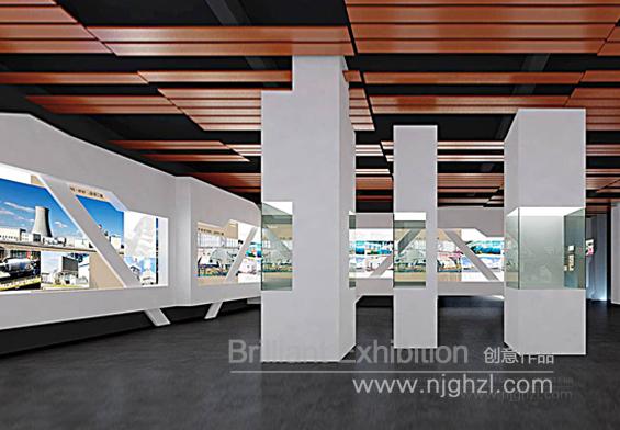 展館設計主題是突出企業精神文化,強調企業的發展理念,形式上結合南汽產品的特點,風格上體現展廳的工業感、科技感。空間處理手法:根據原建筑的特點,因地制宜,強調空間的“開放”與“唯一”,形式的“大氣”與“簡約”、結構上的“精致”與“巧妙”,參觀中的“張”與“弛”,使參觀動線流暢,參觀節點安排富有節奏感,使參觀者自行按照展示內容進行有序參觀。企業文化的展現上,采用連續的設計手法與企業產品元素相融合的理念,在空間的轉換中表達設計主題,打造一個具有民族企業自身個性企業展廳。