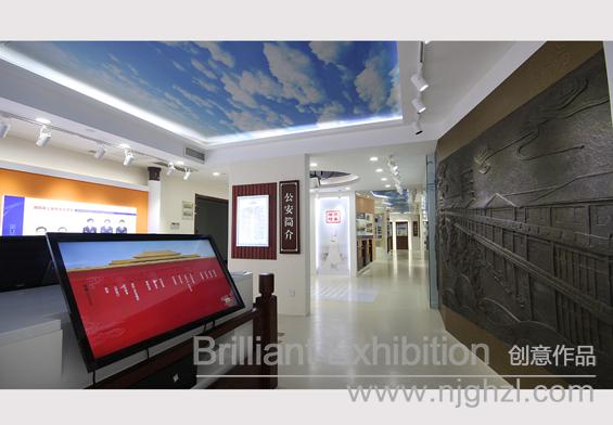 針對展館開間大進深小的結構特點,利用虛隔墻進行橫向分區,序廳為開放性空間,也是左右展區過渡空間,這樣的規劃分區避免了空間的急促感。設計元素結合泗陽地域的漢文化,體現了古樸的風格和泗陽的特質化,頂部的大面積藍天白云明快色調讓空間向上自然延展,同時突出深調性木紋展面內容。展示內容經過合理的安排,顯得規整有序,重點突出,結合觸控系統,地幕投影,電子簽名,使空間活躍靈動,格調精致。