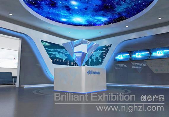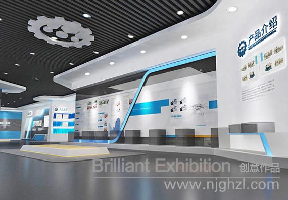 展館旨在打造對外形象宣傳和產品展示的平臺,定位為電機創新產品展示館。以藍灰白為基調,體現展館的工業質感。展面采用大塊面化的設計。以富有科技感的元素穿插始終,將各展示板塊統一為有機的整體。全息成像技術恰到好處地表現機電產品運轉原理,展陳空間產品主題突出,主次分明。