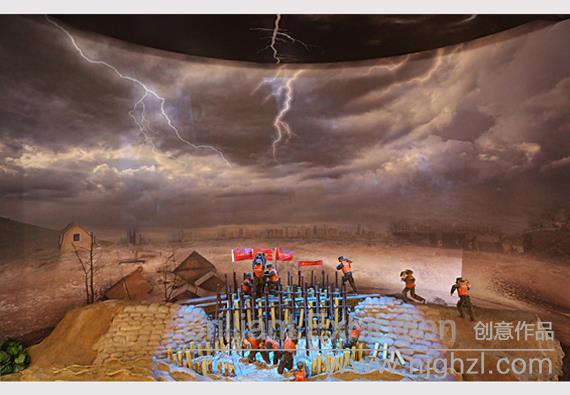 揚州國(guo)防(fang)教育館(guan)是一(yi)個對外開放(fang)的集知識性(xing)、科普性(xing)、互動性(xing)的展覽館(guan),所以在參觀動線上強調便捷性(xing)和流(liu)暢性(xing)。在800㎡的空間(jian)里,需考慮眾(zhong)多(duo)平面展陳內容(rong)的有機(ji)安(an)排,盡可能地擴大展陳面積。隔墻和結構(gou)柱合理結合,既不影響(xiang)參觀動(dong)線,又增加了展面。結合電子(zi)互動(dong)戰爭場景,增加展館的興趣性(xing)和互動(dong)性(xing)。